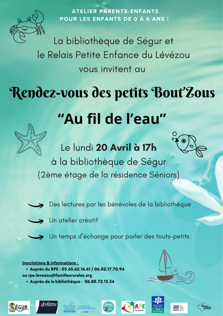 🐚 Rendez-vous des petits Bout’zous Parents et enfants (0–6 ans), venez profiter d’un instant convivial autour du thème de l’eau 🌊 Histoires, créations et partage au programme !